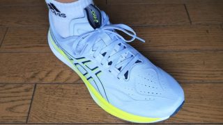 ランニングシューズ ミズノ WAVE RIDER 29(ウエーブライダー29)のサイズ感と履き心地! レビュー アッパーは快適さの中にガッチリ踵の安心感。ソールはドロップが10mmと低くなって素材は全面ミズノエナジー ネクストが使われて柔らかいですが旧モデルと同じように踵から接地しやすくミズノウエーブが利いて安定感があります。 2025.09.08 2025.09.10 ランニングシューズ