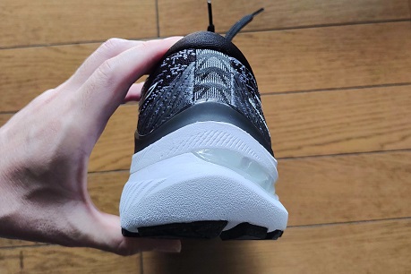 踵部は履き口周りにかけて生地にボリュームがありフィット感は快適ながらヒールカウンターが硬くガッチリしていてホールド性も高いです。