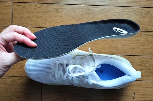 同じアシックスの別売中敷ではPERFORMANCE SOCKLINERが適合し、硬さがあるため取り替えると足裏のフワフワ感が少し抑えられます。