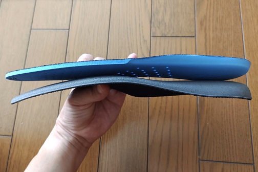 以前は同じ目的で上の画像にあるSpEVA中敷 TIZ601を使用していましたが手に入りにくくなり、代わりとしてPERFORMANCE SOCKLINERを使いはじめました。SpEVA中敷と見た目は似ていて感触も近いですがPERFORMANCE SOCKLINERの方が硬めで弾力もあるように思います。