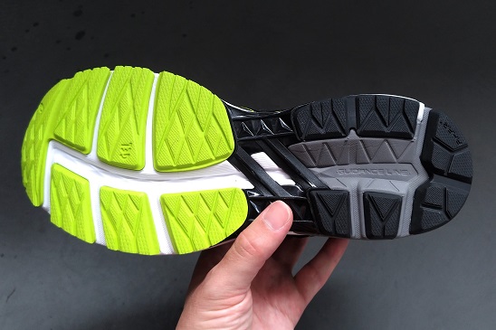 余談ですが、上の画像はアマゾン限定のGT-Xpressというモデルのアウトソールです。GT-1000 6のアウトソールにそっくりです。しかし、GT-XpressにはDUOMAXがなくオーバープロネーション用ではないようです。