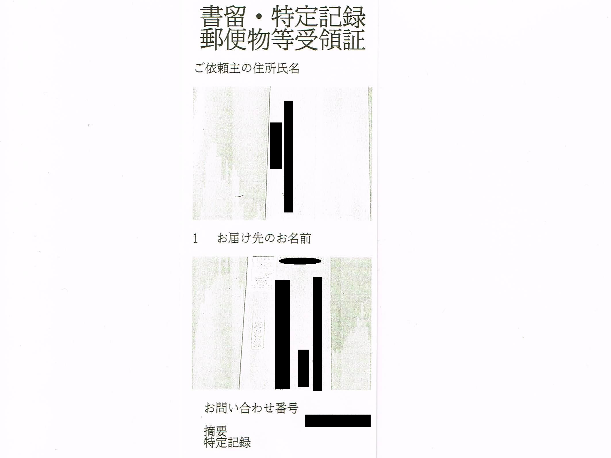 窓口で「特定記録でお願いします」と言って封筒を渡し、その後は料金を支払って領収書と以下の画像の受領証を受け取るだけで簡単でした。