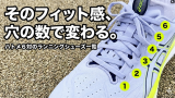 前足部には余裕がありますが甲の部分は紐を締めた時にハトメの間隔は狭くならずよくフィットします。足の形によっては少しタイトに感じるかもしれません。