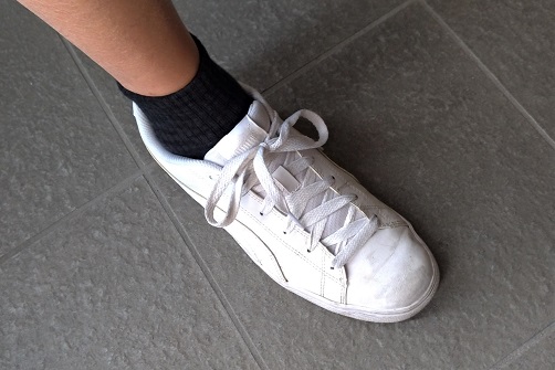 シューズを履くと「グラデーションカラーが特徴だが、着用時にはベーシックカラーが見えるので履きやすい。」と商品説明にある通り上の画像のように無地の部分だけが見えるようになっています。