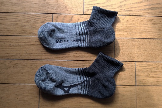 ミズノ独自の吸湿発熱素材「ブレスサーモ」が使われていてパッケージには「いちばん寒いときのブレスサーモ」とあり、このソックスを使っているときは足の冷えを感じにくいです。