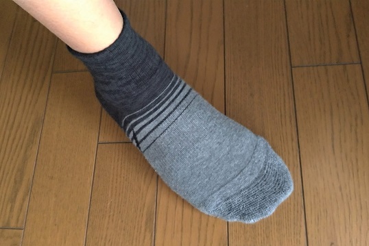 また、温かさが特徴のソックスですが生地の厚みは思ったより大きくなく、いつも履いているシューズが窮屈になることはありませんでした。