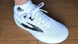 それでも踵部はソールの厚みを感じやすく着地の衝撃を和らげてくれます。ウエーブプレートなどの樹脂製のパーツは内蔵されていませんがグラつかず安定感があります。前足部はソールの厚みやクッション性を感じにくいですが蹴り出しの力を加えやすいです。