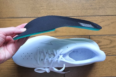 そして、ミズノの本格的なランニングシューズとしては珍しくMIZUNO WAVE(ミズノウエーブ)が搭載されておらず、ビスタ2のようにプレートは入っていません。そのため推進力は控えめでソールの剛性もないですが心地よさを感じながら走れます。