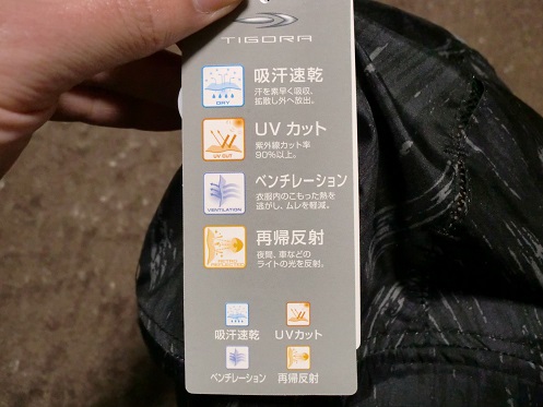 タグには「吸汗速乾」「UVカット」「ベンチレーション」「再帰反射」とあります。